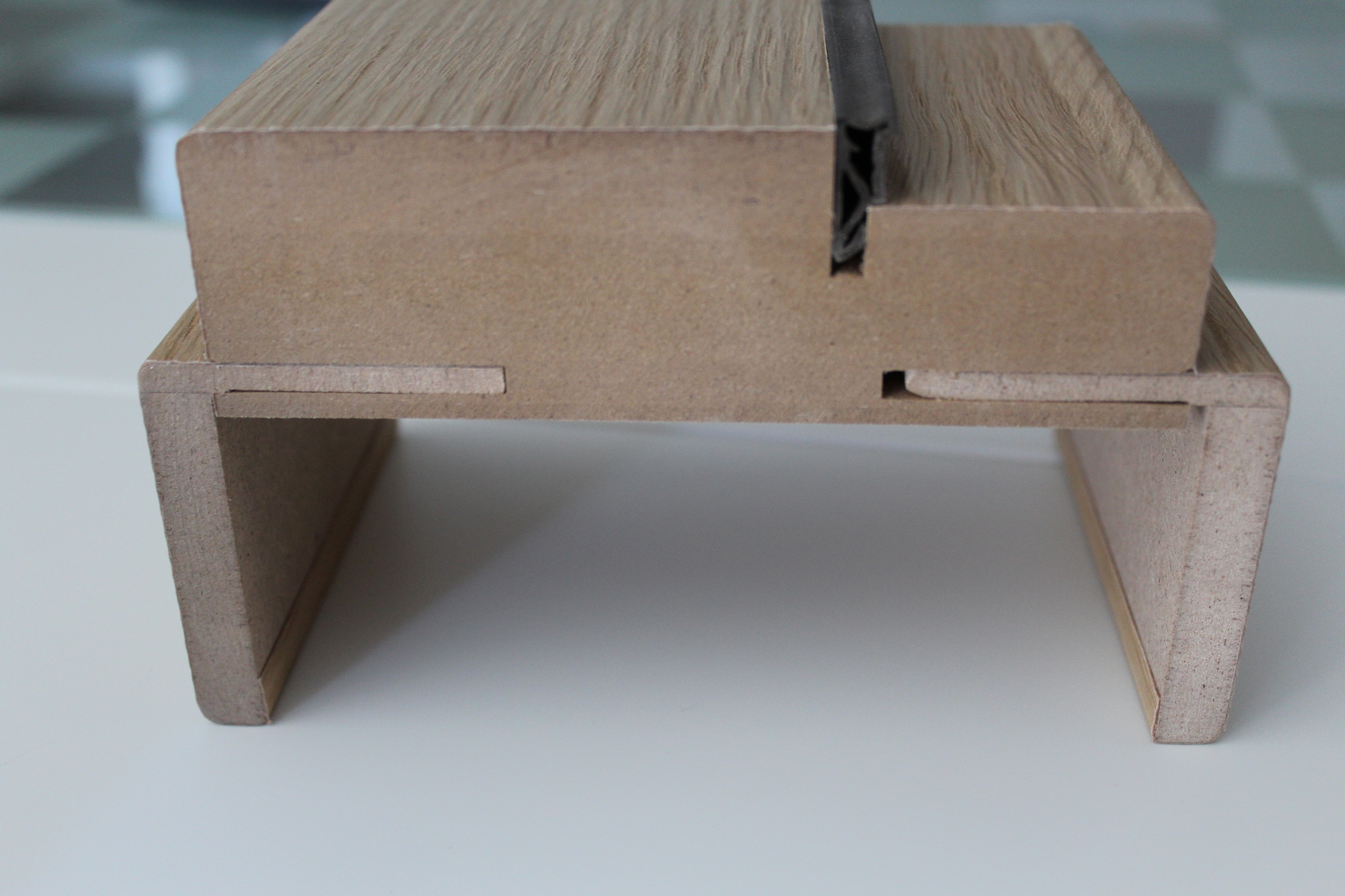 Vrata su furnirana furnirom trešnje (intarzija) i na površini vratnog krila su izrađeni kanali na sastavu furnira, širine 3mm.